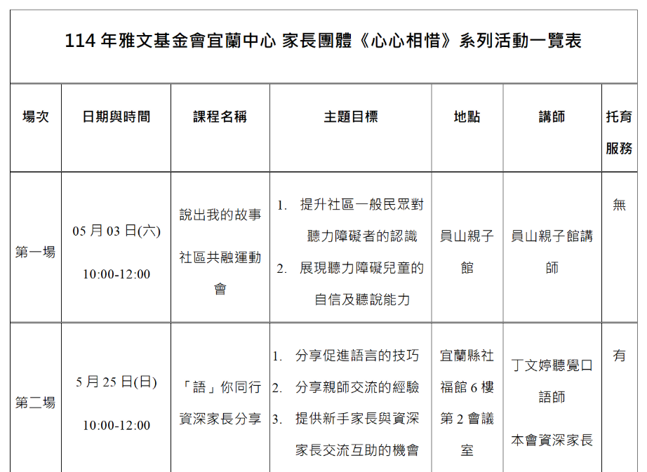 主辦單位:財團法人雅文兒童聽語文教基金會(宜蘭縣政府委辦聽語訓練中心)