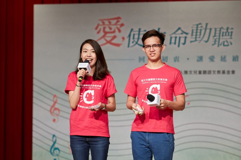 重度聽損的吳厚廷(圖右)擔任發表會主持人,台風穩健而流暢。