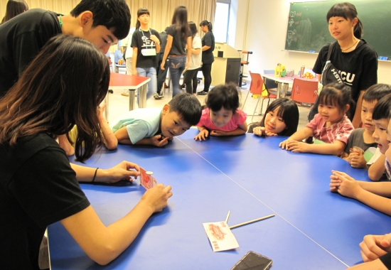 今年,許多孩子都是第一次參加,有些孩子容易緊張羞怯, 但在隊輔姊姊熱情的陪伴下,終於展開笑顏和其他夥伴遊戲互動;有些孩子落落大方,能立刻和其他人打成一片;有些孩子心思細膩,能主動給予他人關懷及鼓勵。