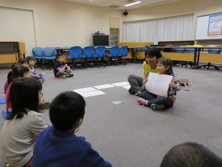 首堂課,老師運用烏克麗麗自然地引導孩子們上台簡單彈奏並向大家自我介紹。利用孩子們感到好奇的樂器與輕快的音樂,舒緩了首次見面的陌生與緊張感,快速拉近彼此之間的關係,場面也很快熱絡起來。接著,老師更透過「蘿蔔蹲」和「猜猜是誰的腳」的遊戲訓練孩子的觀察力及反應力,讓彼此更加熟悉。