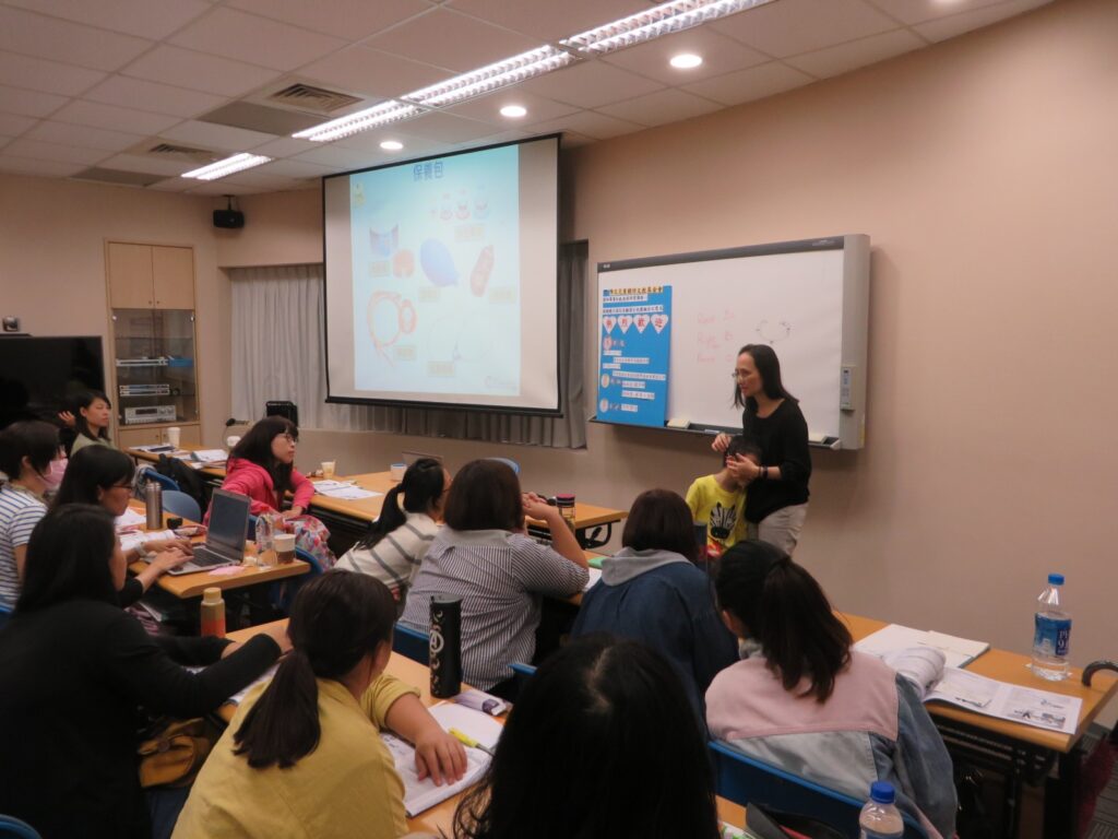 下午課程則是由本會林珈霈聽覺口語師講授「談對聽損生有效的教學策略及實務分享」,除了讓教師了解聽損生的特質及困境外,也提供許多具體的策略讓教師們能實際應用於教學上。此外,聽覺口語師也分享了本會「聽力小宇宙」、「微聽損」等聽力保健衛教網站,透過短片、小遊戲等各種生動有趣的方式,提供教師豐富的教學媒材,讓班上同儕也能認識聽力損失,並解決孩子們對聽損生的好奇。與會教師都非常用心參與及聆聽、積極暸解聽損相關資訊,並踴躍提出相關問題。