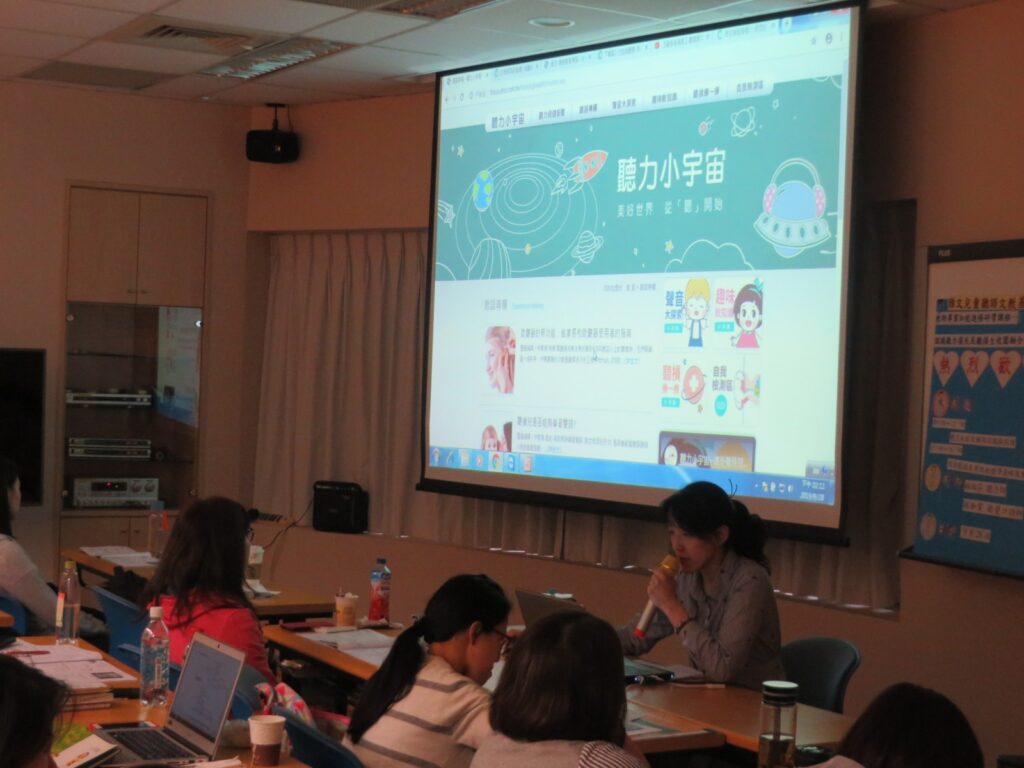 聽覺口語師分享本會聽力保健衛教網站,提供與會教師豐富的教學媒材。