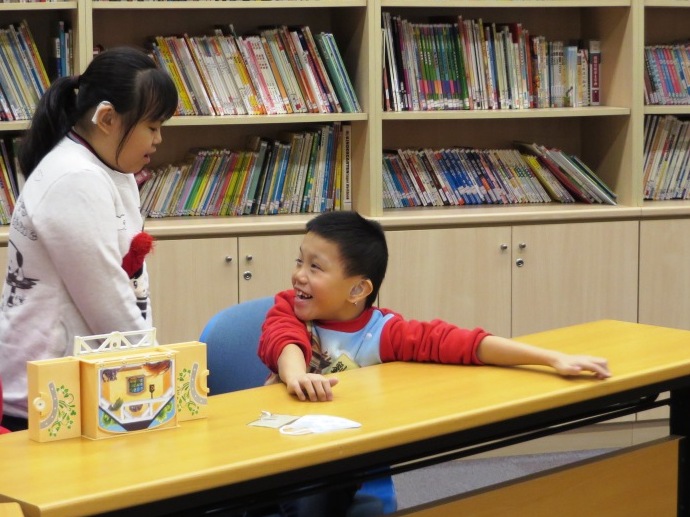 雅文基金會2015年第二梯次社交課程,已於12月12日順利落幕,在教師們精心設計的六次課程裡,藉由遊戲與刻意製造的情境下,讓學齡的聽損生一次次地練習各種社交技巧。最後一堂主題為「大變身」的課程中,老師觀察孩子們是否已能發揮前五堂課程所學的技巧,並運用在適當的時機與場合。