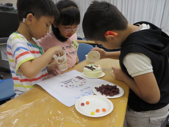 孩子們分工合作畫出設計圖、裝飾蛋糕,過程中學習合作及協調。