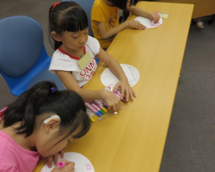這兩場課程裡,老師先讓孩子們照鏡子,認識自己的喜怒哀樂之外,互相觀察身旁同學的表情變化,讓孩子重新認識自己與他人的情緒。也讓每個人依當下心情畫出表情面具,製作面具完成後,介紹自己面具中的表情所代表的情緒。老師以此活動,激發孩子們生活中各種情緒的回憶,大家在討論時,都爭相舉手想與他人分享,有的孩子說早上被媽媽罵情緒很差,有的說期待社交課的遊戲時間很開心,大家都能清楚地說出自己的情緒。