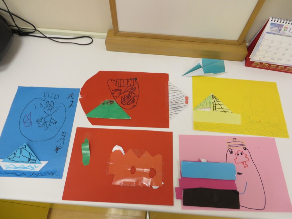 在認識了生氣以及害怕的感受後,老師引導孩子運用色紙與畫筆,製作出屬於自己生氣或害怕的情緒罐罐,讓孩子心裡那些看不見的情緒感受,用色彩與作品呈現出來,促使孩子對情緒更加了解與用畫作表達。其中最讓人印象深刻的是,翔翔運用黑色紙卡製作出一個立體的害怕情緒罐罐,翔翔說:「這個害怕的罐子,可以把害怕的事情擋在外,裡面有爸爸保護大家,不用害怕。」還有其他孩子,也畫了紅色的生氣罐罐,打算一起把生氣的感覺慢慢從身上抓進瓶子裡,讓自己可以更開心。老師藉由簡單的情緒罐罐,不僅讓孩子對情緒更加了解,還讓孩子們深刻記錄下情緒感受,使孩子透過藝術創作抒發情緒、調節情緒。