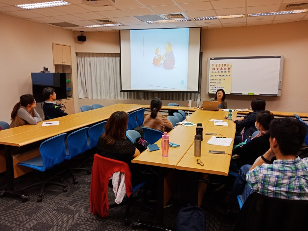 而家長班在課程中,老師也帶領家長一同閱讀孩子們正在討論的情緒繪本,引導家長可以藉由繪本,與孩子聊聊對情緒的感受與情緒經驗,更能了解孩子面對不同情緒內心的想法,再針對孩子內心所想,給予適切引導。並也在家長最苦惱的教養問題,以及面對孩子負面情緒這一塊,給予家長建議。最後也提供家長一些面對孩子情緒的原則,帶領家長幫助孩子解決不善於分享的人際問題,也提醒家長,應以中立角色,並給予孩子分享的決定權,更能促使孩子有良好的物權概念及自主分享意願,在分享的社交行為上能更加持久與適切。