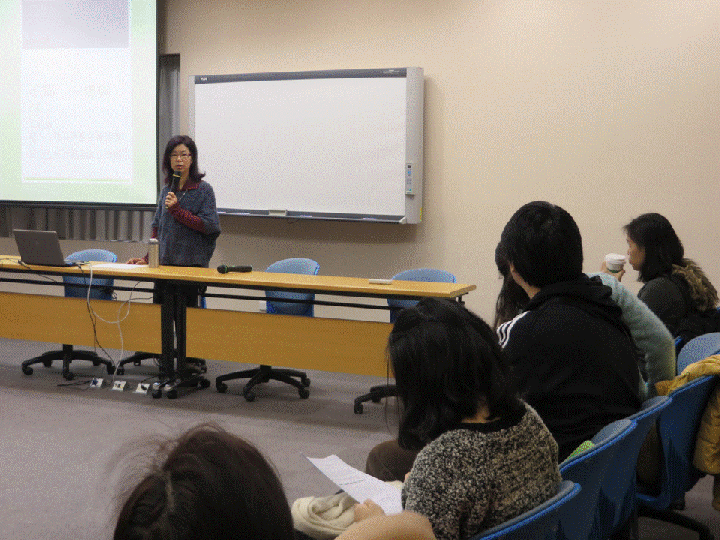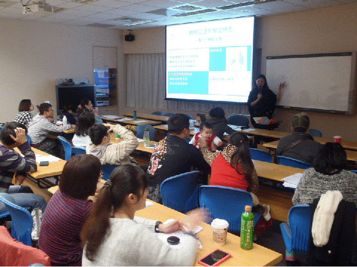 第四堂課程為《認識聽覺口語教學法》,由本會聽覺口語師─羅敏馨老師主講,以生動活潑的方式與家長們互動,並清楚地說明早期療育的重要性、聽覺口語教學法的特色、教學重點及目標等內容。老師在課堂中示範了許多教學技巧,並透過實際案例的分享,使家長們瞭解聽覺口語教學法如何應用於生活當中。