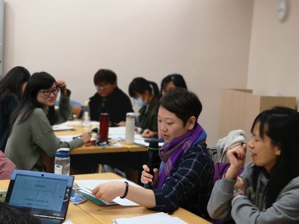 午休後,工作坊接續介紹「唸讀評估工具」。不少研究文獻指出言語輸出的表現會受語音聽取品質的影響,因此透過唸讀評估,臨床人員可客觀檢核與量化聽損兒童在各評估向度上的表現,如:唸讀流暢度、斷詞能力和節律傳達等。在研究員洪右真講解完此評估工具的理論基礎和評估方法後,即播放一名聽損兒童的唸讀音檔讓學員可以學以致用,立刻小試身手。