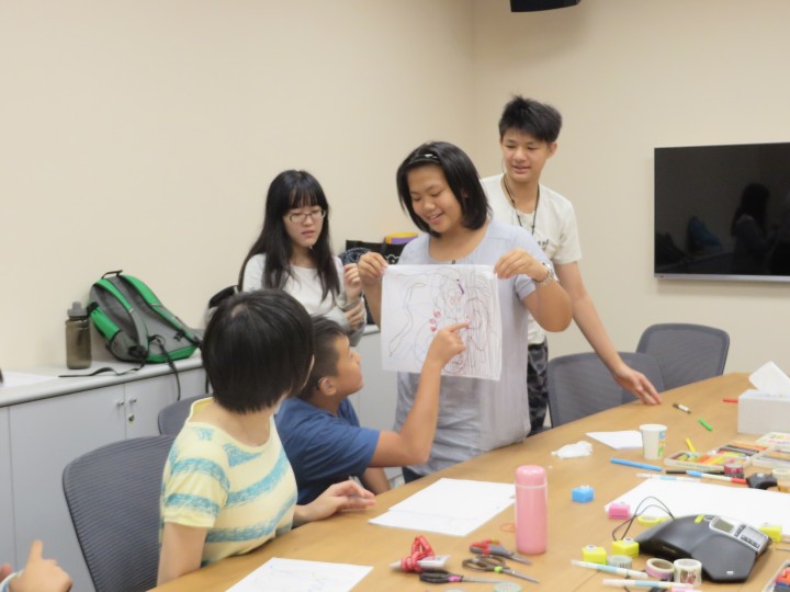 此次參與的成員為國高中生,互不熟識的大家一開始都相當安靜且自然的男女分邊找位子坐下來。老師透過一系列的破冰活動打破男女間尷尬不好意思互動的性別界線,也使成員看見彼此、建立連結。中午用餐時,原有的小團體已被打破,成員間開始主動聚集聊彼此共同感興趣的話題或經驗,如日劇、漫畫、星座、旅遊……等。接著透過畫畫、拼貼的活動,讓成員除了學習試著停下來關注自己,也觀察他人及所屬的環境,讓自己與他人有更多連結。