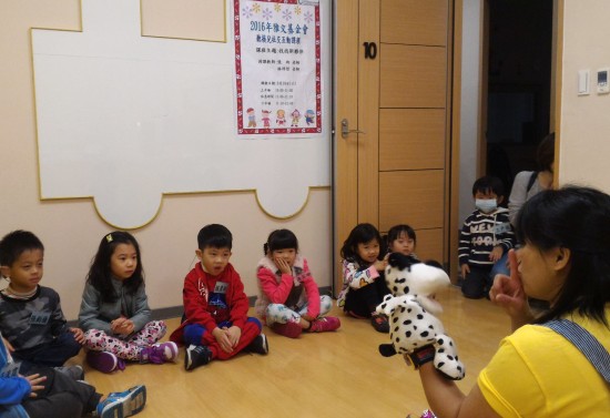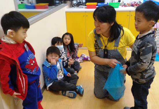 老師利用手偶拉近和孩子們的距離