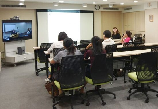 雅文基金會南區中心的家長們透過視訊連線,全神貫注聆聽。