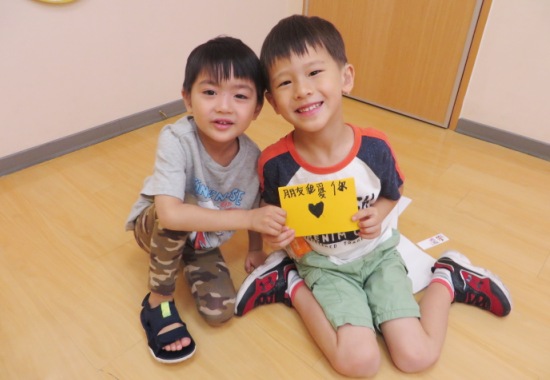 孩子們獻上祝福的話語給朋友,卡片上用純真的話語寫著「朋友我愛你」。