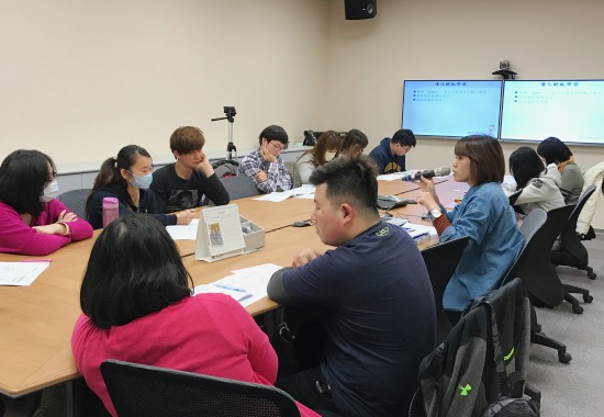 另一堂課由本會龍鈺盈聽覺口語老師講授兒童語言發展與聽覺口語教學法的運用技巧,課堂一開始,家長們分享自己對單側聽損孩子有哪些擔心、觀察到孩子有哪些能力,以及曾經嘗試運用哪些方法提升孩子的口語能力。聽過家長的分享後,龍鈺盈聽覺口語老師針對家長有疑問的部份進行澄清,並直接現場示範、進行演練,讓家長學習在日常生活中可以怎麼運用聽覺口語教學法來協助孩子提升聽與說的能力。