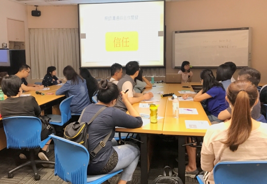 「親師溝通」主題,邀請到台北市啟聰學校-張淑品老師來擔任講師,藉由老師豐富的經驗分享,讓家長們了解目前學校的運作方式、可使用的資源等,減緩家長的焦慮與不安;另外也提到,親師溝通的最大關鍵就是相互信任,在相互信任的基礎之下,才能開拓親師間順暢的溝通管道,共同協助孩子適應園所的生活。