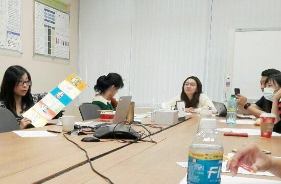 「情境教學」主題則由正浩媽媽分享,正浩媽媽不但是資深家長,更擔任本會愛心到宅家長三年之久,教導聽損兒的經驗相當豐富。她提醒其他家長們,在教導聽損兒時,一開始得先建立孩子傾聽的能力,家長們不時地提醒孩子注意聽、鼓勵孩子傾聽都很重要。另外,正浩媽媽利用超市DM、海苔、樹枝等生活中常見的物品,示範如何進行貼近生活的教學及製作教具,讓其他家長相當佩服。