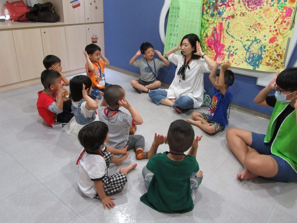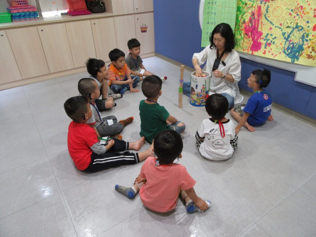 另一邊,兒童社交課程的主題為:「分享與合作」,目標是促進聽損孩子們進行遊戲輪替,並在遊戲過程中相互協調合作,學習如何求助或拒絕他人。