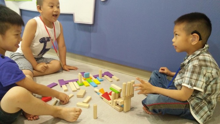 接下來,心理師讓小朋友們化作狀況小短劇中的主角,演出自己在日常生活中,容易和別人產生衝突的情境(如:故意弄倒大家一起合作完成的積木),藉著模擬的過程,心理師適時地提醒小朋友們要使用合宜的語言來維繫彼此間的互動,更重要的是,讓小朋友們了解溝通是雙向的,必須在雙方皆理解而且同意的情況下,才有可能達成共識。