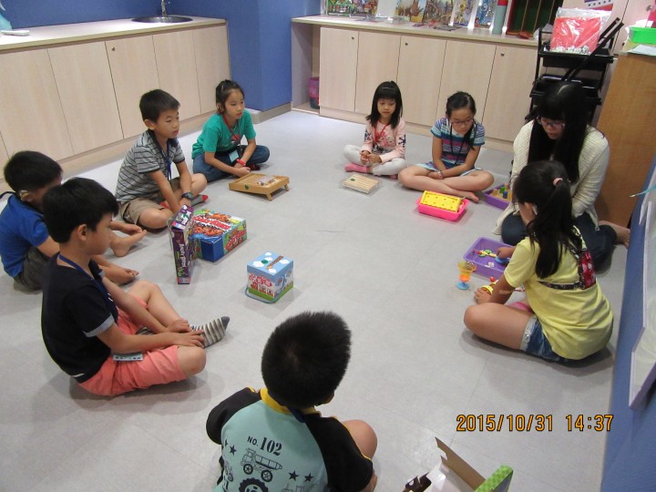 課程一開始,老師向孩子們展示事先準備好的小禮物,並說明今天表現最好的人,就可以自己選禮物帶回家;但到底「表現好」的標準是什麼呢?老師和孩子們圍坐成一圈,共同思考、討論大家該一起遵守什麼樣的課堂規則。孩子們經過前面幾次的課程經驗,都非常踴躍提出自己的看法,例如:「說話前先舉手」、「在別人講話時保持安靜」等。