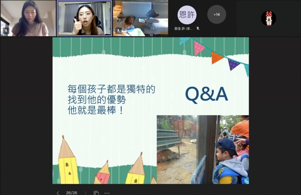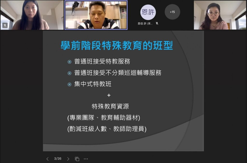 「聽損生融合挑戰與適應」課程邀請鳳山社區自治非營利幼兒園施晶晶老師分享學校一日作息,讓家長能提前與孩子一同準備,也提供學校資源,及建議家長與校方事前的溝通重點,讓孩子能順利適應學校生活。