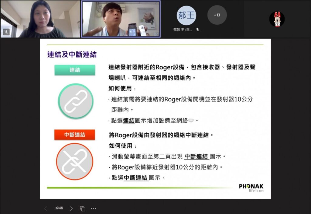 「認識聽能輔具與系統」課程邀請高雄區博士助聽器吳宏坤店長來介紹無線調頻系統的輔具與功能,透過圖片及展示,讓家長們能了解調頻系統輔具在校協助幼兒的重要性,及如何有效運用。