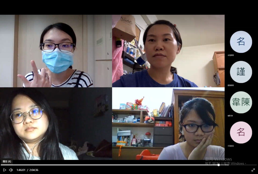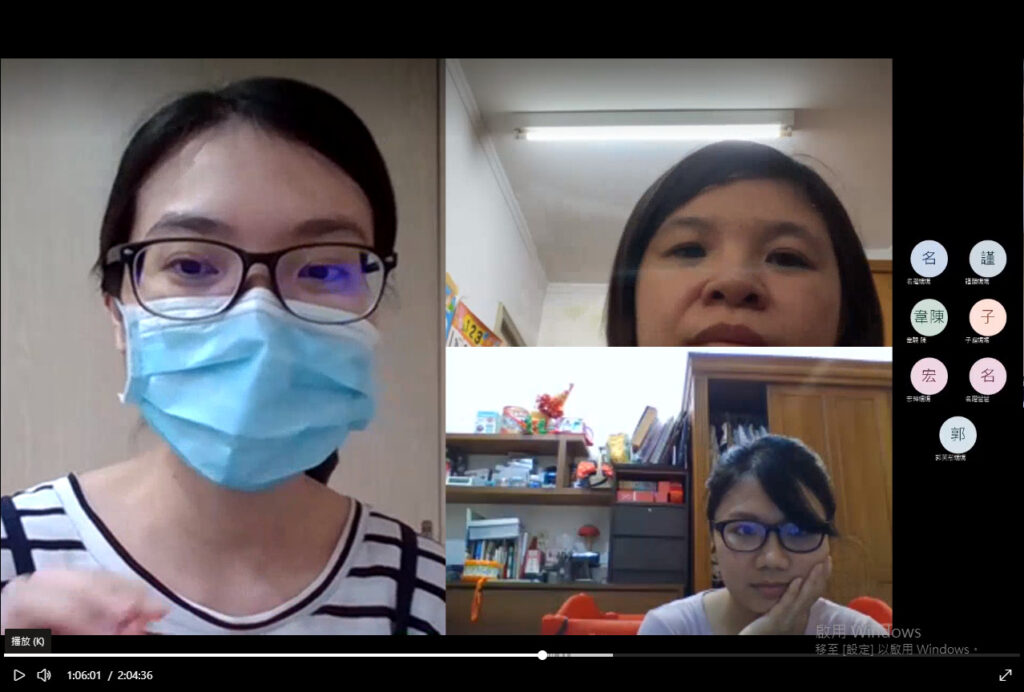說明了「不同年齡層兒童專注力的持續時間」,以及提醒家長們「影響專注力的因素有哪些」後,進入第一個討論主題:五感專注力,五感包含了視覺、聽覺、觸覺、味覺和嗅覺,老師先從每一種感官舉出生活中相關活動實例,如何結合聽覺口語法練習,並給家長們五分鐘的時間動動腦,在運用不同感官時,生活中有什麼教材或活動可以提升孩子的專注力。到了分享時間,請家長們輪流開啟視訊鏡頭和麥克風分享自己的小活動,每位家長有想出一種感官的專注力活動!彼此分享自己在家中可以使用的教材和活動方式。