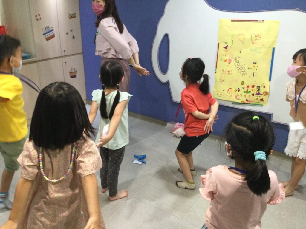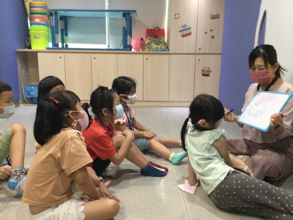 接著「你要不要一起?」課程,老師邀請小朋友分享自己所帶來的喜歡的事物,這個環節老師請分享者邀請幾位小朋友一起參與對話,形成一個小小對話循環,要注意對話不能被斷掉、須一直延續,這就需要些接應與技巧。第一次進行小組對話互動,有些小朋友害羞或不知道如何開始,有些小朋友在接收到對方的訊息後不知如何做回應,當這些情況發生時,老師會先同理小朋友的感受,引導小朋友們運用聯想轉換句型,鼓勵孩子繼續進行互動,在大家溝通與回應的過程中,同時也創造了同儕間親近的互動空間。