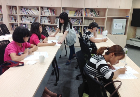 父母成長團體於10月底至11月進行「溝通」領域的教學技巧運用課程,開場時,老師先讓家長們分享孩子的近況,替課程暖場,接著便開始進行「溝通領域」的練習活動。