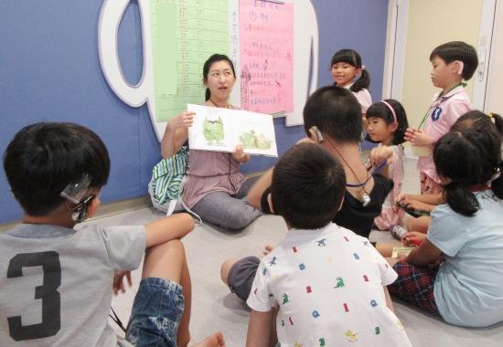 接著老師運用情緒繪本,引導孩子們思考,生動活潑的主角與情緒怪獸,吸引了大家的目光,充滿想像力的發揮空間,讓大家自然地熱鬧起來。隨著每種情緒色彩變化,孩子們踴躍地發想,共同匯聚了每種情緒的特質。從燦爛的金黃色開始,像餅乾、又像星星或陽光,很想分享的心情就是「開心」;滴滴答答的藍色,小朋友則說像下雨,只想一個人坐在海底的空瓶中,感覺好難過;生氣的經驗也最能引起團體的共鳴;還有想躲起來的渺小黑色,象徵著害怕;平靜的綠色、心愛的粉紅色等等,孩子們雖然無法說出精準具體的詞彙,但在共同激盪聯想的過程中,也更加貼近什麼是情緒了呢!