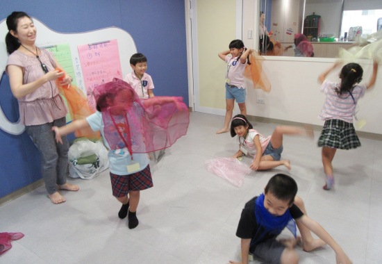 最後體驗活動,老師請孩子們回歸自我與自然,從全身舞動中,探尋熟悉情緒的感官與動作體驗,並觀看他人的肢體詮釋,讓自己也開啟新的嘗試。要展現自我的動作,對於羞怯的孩子是較為困難的,但也可看到大多數孩子在高興時的肢體表達,自主地靠近與玩鬧在一起,更使的彼此關係更親近。老師適時地點出每個孩子表達情緒方式的不同與變化,也再次強化了尊重、接納彼此的重要概念。