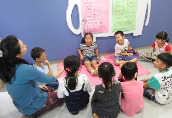 在開場的「解讀心思」猜謎活動後,接下來的挑戰是角色扮演情境劇。老師巧妙地選擇孩子們之間常發生的同儕互動困擾作為主題,例如爭搶玩具、好管閒事的紛爭等,請孩子們嘗試扮演,並構想出適合的解決方式。孩子們在一看到表演用的玩具與道具後,興緻就高昂起來,雖然急切地想要玩遊戲,但孩子們也漸漸學會等待與控制,了解遵守規則與尊重他人,這可是之前幾堂社交課程下來累積的成果呢!