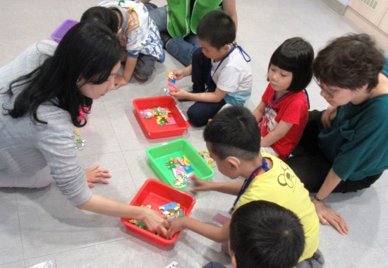 雅文基金會南區中心學齡前4-5歲兒童的「聽損兒社交互動課程」,在4月15日舉行第二堂課「分享與合作」。此次學習目標包括引導孩子用口語表達的方式互相分享,以及簡單的合作、一起解決問題。