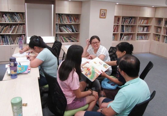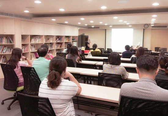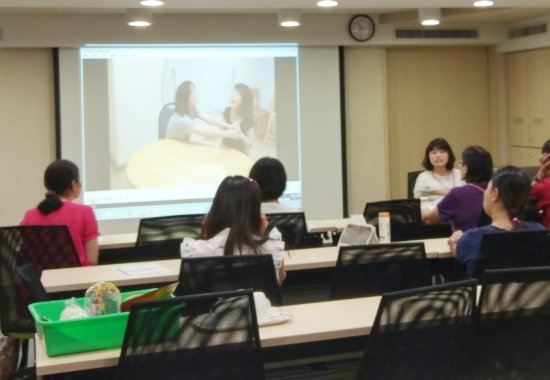 進階課程內容分為理論與實作兩部分,講師簡單向家長介紹何謂口語,以及口語中表達性詞彙的發展過程,並用問題引導的方式,與家長一同討論當孩子不愛開口、極少開口時,家長該怎麼做?該怎麼引導?家長們皆表示孩子常有這些狀況,所以就像話匣子被打開一樣,紛紛發言討論熱烈。