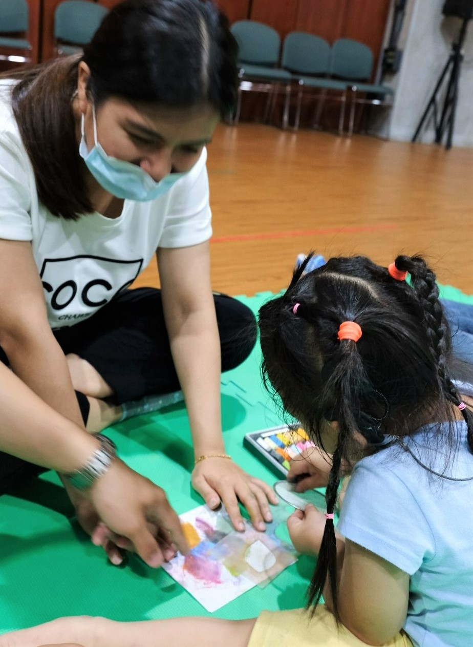 圖3:親子動手玩粉彩,進行觸覺與色彩體驗