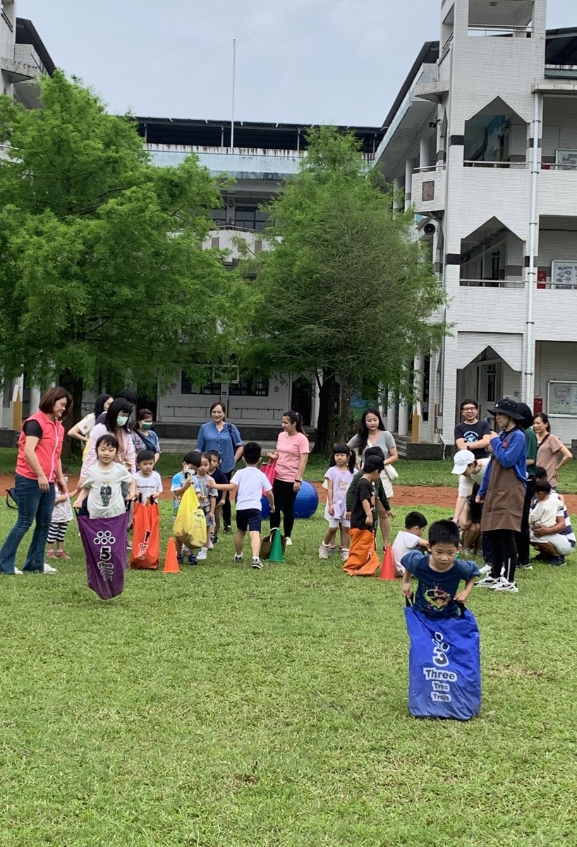 比賽正式開始,家長與孩子們共同參與滾大球、跳袋及兩人三腳競賽。孩子們盡情為隊友加油吶喊,也鼓勵動作比較慢的好朋友不要氣餒。最終,大家都完成了三個關卡的挑戰,共享努力的成果。