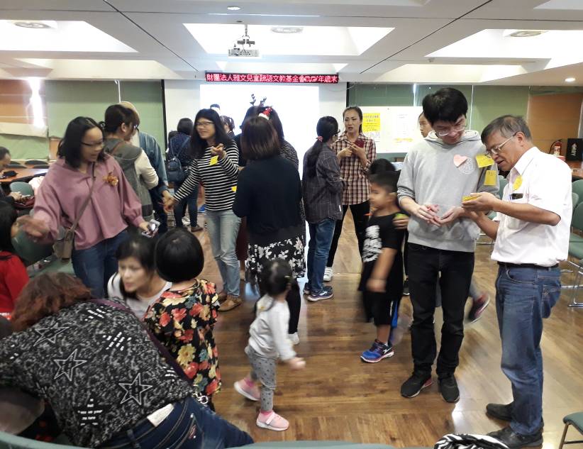 雅文基金會宜蘭中心於2018年12月01日(六)舉辦感恩歲末聯歡活動,聽損生家庭齊聚一堂,感恩一年中的辛勞與付出。活動特別設計「遊戲競賽-破冰遊戲」、「回饋與分享」與「感謝有你」,每一個家庭都熱烈參與活動,透過遊戲競賽促使親子關係更加緊密,讓聽損生家庭開始認識彼此並敞開心房分享經驗,增進聽損家庭間交流及互相支持,為彼此感情升溫。
