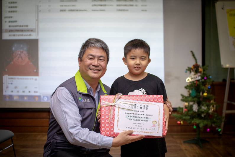 此次活動頒發「閱讀小尖兵獎」,鼓勵孩子多多閱讀、提升語文能力。