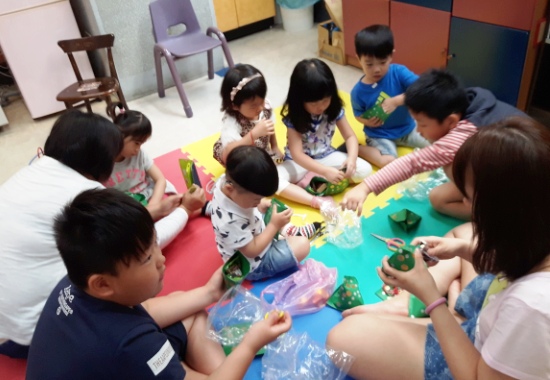 兒童課程講師以生動有趣的方式向小朋友們介紹端午節相關故事,接著製作屬於自己的「糖果肉粽」。