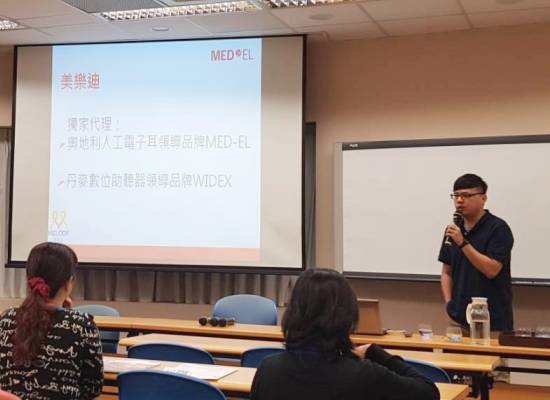 上午最終場由美樂迪公司吳承恩聽力師壓軸,介紹奧地利廠牌─MedEL,其新上市的植入體除了維持一貫能觸及耳蝸深處的長電極設計,還可容許更高的MRI磁力強度,若電子耳使用者之後有定期照影的需求,也能放心接受檢查。MedEL也是首創將線圈及語言處理器合而為一設計的品牌,今年也即將有新型號問市,更簡約的外型設計,再加上多樣配色選擇,讓孩子的輔具多了一些童趣,也讓他人更正向的看待電子耳。