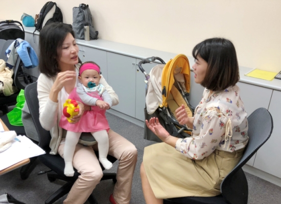 在每一次的課程中,我們鼓勵所有家庭照顧者能夠一起到場參與學習,同時也鼓勵家長帶孩子來到現場,讓聽覺口語教師能夠實際觀察家長與孩子的互動,進而提供教學建議及回饋,而也因為是團體課程,參與的家長們能夠藉著學習的機會互相交流學習經驗及心得,讓彼此可以互相打氣,在陪伴孩子學習聽覺口語教學課程的起點不孤單。