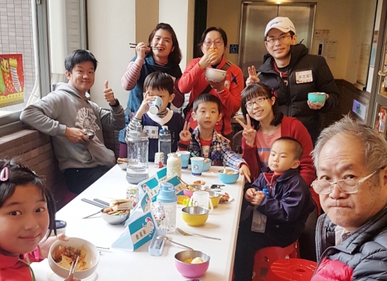 寒流來的這天,雖然外頭只有14度的低溫,每個家庭一樣熱情地帶著準備好的菜餚參與聚會。桌上擺滿了各式佳餚,有的是媽媽們的私房菜;有的是飯店國宴料理;有的是熱門排隊美食,孩子們早已準備好自己的餐具,等不及要大快朵頤一番了呢!在享受美食的同時,孩子們也不忘運用在課程中學習到的溝通技巧,向他人推薦自己帶來的美味佳餚。