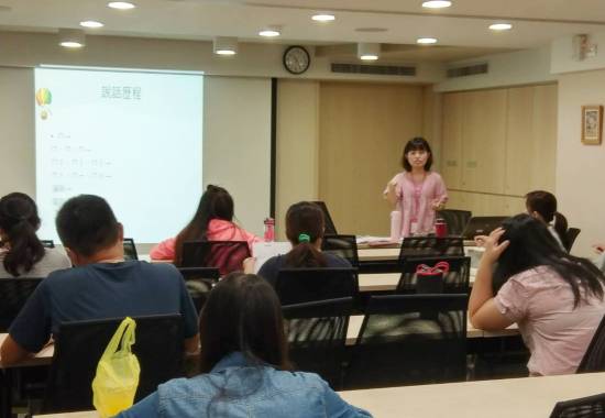 初階課程有許多新生家長參與,老師先向大家重新介紹說話課程中會用到的主角ㄅㄆㄇ注音符號,由於課程中有其他國籍的家長,所以也教導大家將ㄅㄆㄇ正確發音,接下來介紹韻母和聲母的發展年紀與歷程,讓家長們有基本概念,並在Q&A時,讓家長們重整剛剛吸收的資訊、提出心理的疑惑,像是:「ㄚ」還不會發,可以教孩子仿說「吃飯飯」嗎?或是叫一歲多的孩子說「車車」,他卻只說「ㄜㄜ」,為什麼會這樣呢?經過Q&A的問題與解答,聽覺口語師發現大家都有掌握到正確的概念!