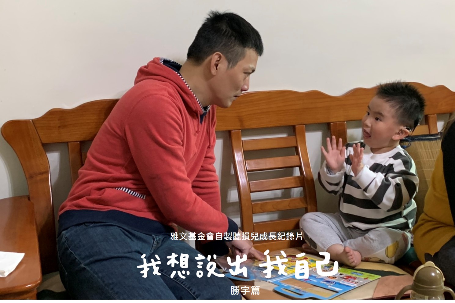 當紀錄片拍攝到了尾聲,勝宇是參與拍攝的三個聽損兒中,口語進步表現最少的,攝影團隊甚至在想,可能沒辦法拍到勝宇開口說話的樣子了,沒想到,某一天晚上,媽媽突然傳來一則驚喜訊息:「勝宇突然走到我身邊坐下說,媽媽,我可以跟你聊聊嗎?」終於,勝宇在4歲時開口說話了!
