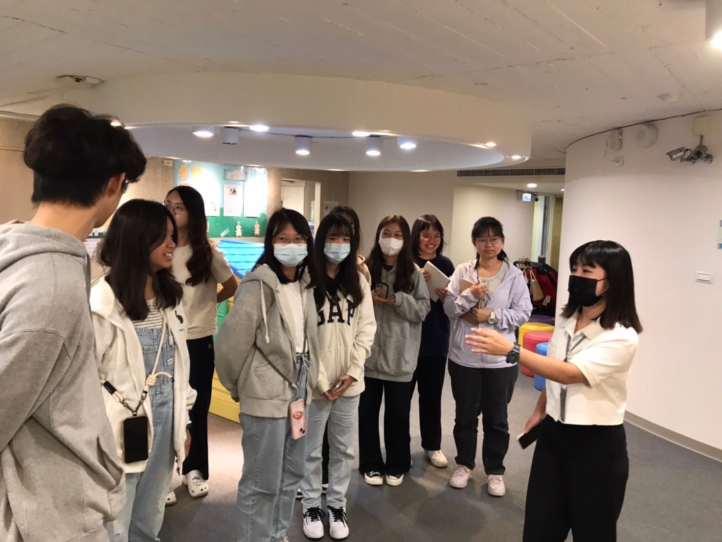 此外,學生們還有機會觀摩實際課程!聽覺口語師因應不同聽損孩子的年紀、聽損程度等面向擬定教學目標,引導家長不同的教學策略,示範如何與家長合作來提升孩子的學習成效。台下學生們一邊頻頻點頭做著筆記,有如教授說的:「帶著學生們踏出校園,相信對他們會有更不同的眼界與收穫。」