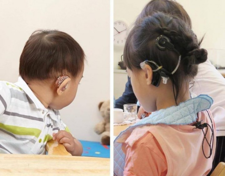 左為配戴助聽器、右為植入人工電子耳的孩子們。