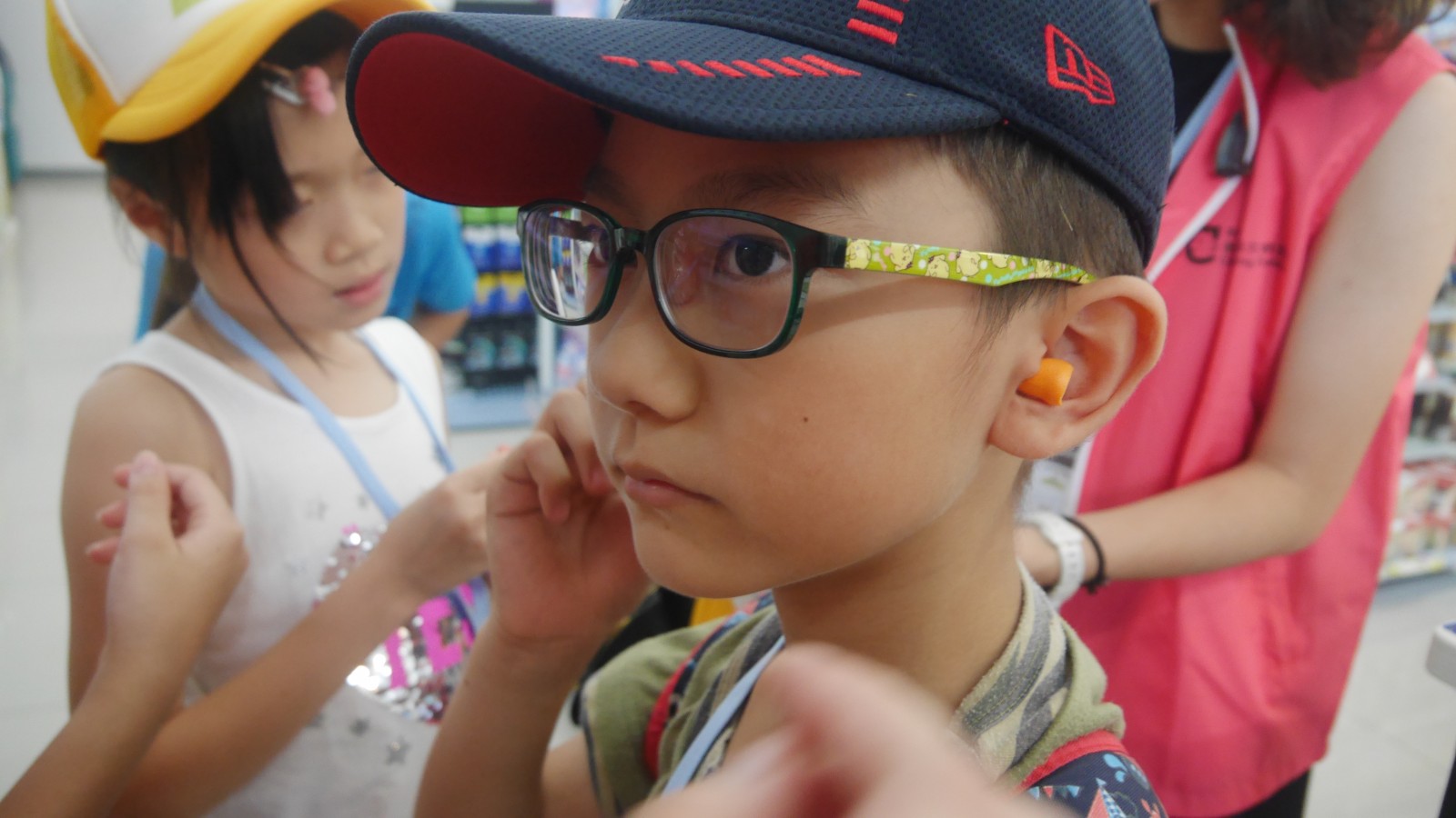 這次的任務讓孩子們戴上耳塞,要聽老師摀著嘴巴講出指令,並根據這個指令拿到正確的物品。「戴耳塞悶悶的,好不舒服」、「聽不清楚的感覺好差,」孩子們在闖關時,也逐漸體會到聽力損失者的辛苦。