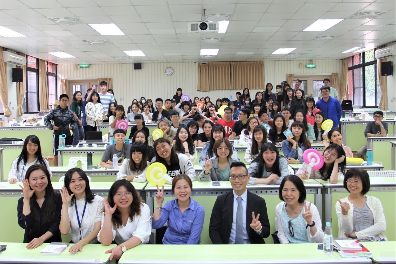 國北教大特教系學生開心地拿著棒棒糖造型氣球與講者與老師合照。 uStory有故事/提供
