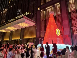 高雄洲際酒店今年以 「紅帽之城」 為主題,匠心打造一系列聖誕節布置,包含館內各處的精緻點綴,以及以聖誕帽為靈感設計的創新戶外聖誕樹,為賓客與民眾呈現一個充滿節慶氣息的歡樂天地。聖誕樹由酒店團隊巧思設計,完美結合節日氛圍與高雄洲際一貫的創新風格,讓大家置身於一場夢幻溫馨的聖誕帽奇境,為這個充滿愛與歡樂的季節增添別具意義的亮點。