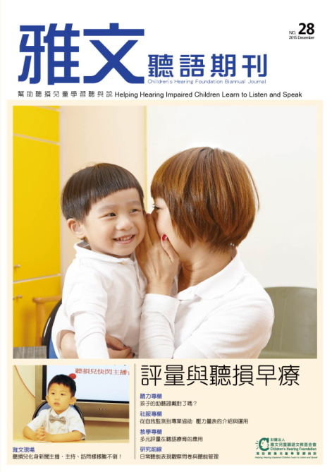 期刊 【NO.28】評量與聽損早療 aslanchen 2015/12/15 954 點擊看期刊完整版 目錄: Alana專欄: 成人聽損者如何善用機會 聽力專欄: 孩子的助聽器戴對了嗎? 社服專欄: 從自我監測到專業協助 壓力量表的介紹與運用 教學專欄: 多元評量在聽語療育的應用 研究前線: 日常聽能表現觀察問卷與聽能管理 雅文報告: 評量無所不在 但你真的瞭解評量嗎? 人物寫真: 超級外婆與爭氣孫 珍貴的聽力只用來感受世界的美好 家長心聲: 為了孩子,各種難題都能解決 雅文現場: 「童」心協力 兩岸聽損兒台灣遊學趣32聽損兒化身新聞主播,主持、訪問樣樣難不倒! 有話好說 聽損青少年人際關係不卡關 活動集錦 aslanchen 義大皇家酒店作客 聽損兒開唱幸福聖誕《聯合報》 中華賓士愛心捐贈 助聽損兒購置助聽輔具 【NO.47】探... 【NO.46】聽... 【NO.45】一... 【NO.44】遺... 【NO.43】我... 【NO.42】傾...