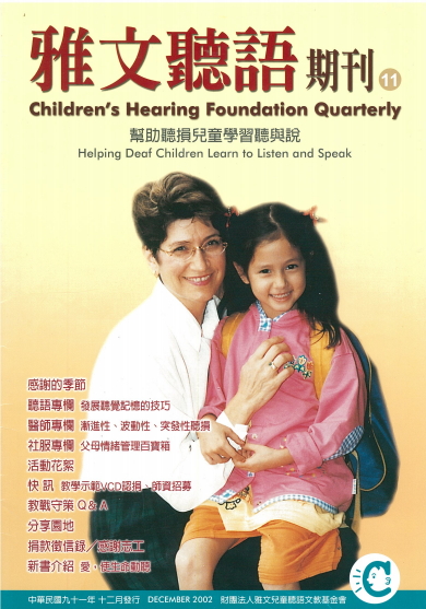 期刊 雅文聽語期刊-NO.11 aslanchen 2002/12/25 736 點此閱讀期刊 目錄: 感謝的季節: 陳景松 教學研究: 專欄發展聽覺記憶的技巧 聽力專欄: 漸進性、波動性、突發性聽損 社服專欄: 父母情緒管理百寶箱 活動花絮: 快訊: 教學示範CD認捐、師資培訓招募 教戰守策-Q&A: 分享園地: 捐款徵信錄/感謝義工: 新書介紹-愛,使生命動聽: 期刊連結 aslanchen 雅文聽語期刊-NO.10 雅文聽語期刊-NO.12 【NO.47】探... 【NO.46】聽... 【NO.45】一... 【NO.44】遺... 【NO.43】我... 【NO.42】傾...